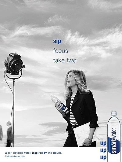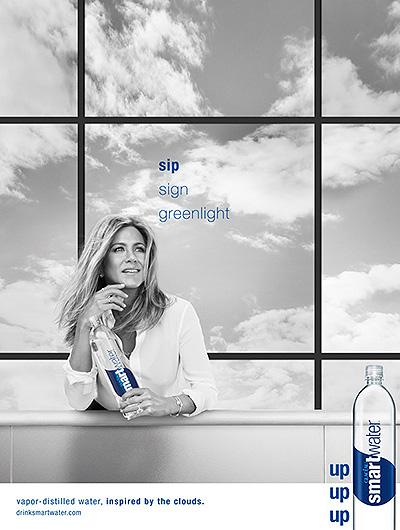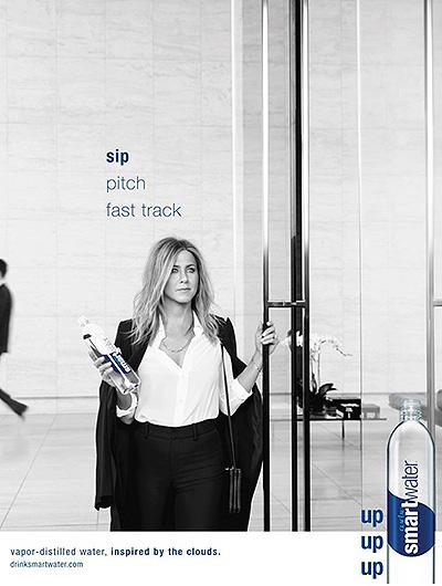 Дженнифер Энистон продолжает свое сотрудничество с производителями минеральной воды Smart Water: актриса вновь стала лицом рекламной кампании бренда