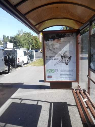 «Для продвижения акции Фонда «Не бросай меня на даче» оператор разместил запоминающиеся имиджевые постеры на остановочных павильонах разных районов города, – отметила Татьяна Роматова, руководитель проекта «Остановочные павильоны» компании Gallery. – Мы считаем, что остановки общественного транспорта, как один из самых контактных видов наружной рекламы, наиболее подходящий для подобной акции формат. Правильно сформированная охватная программа обеспечивает наибольший контакт и увеличивает запоминаемость рекламы среди целевой аудитории».