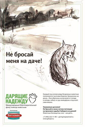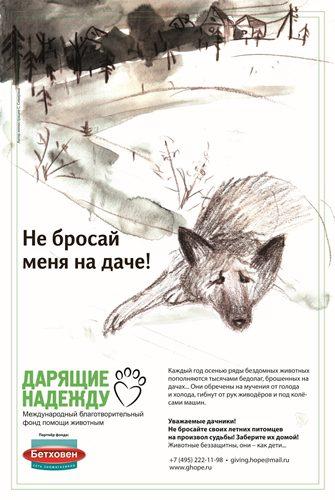 Международный благотворительный фонд помощи животным «Дарящие Надежду» в партнерстве с сетью зоомагазинов «Бетховен» запустили в Москве социальную кампанию под слоганом «Не бросай меня на даче!»
