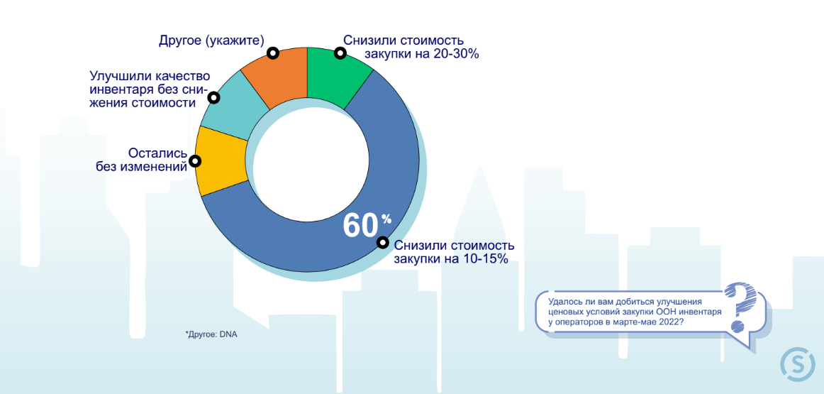- 60% агентств снизили стоимость закупки инвентаря на 10-15%. При этом 50%опрошенных операторов заявили, что стоимость их инвентаря не изменилась, 33%снизились на 10-15%, 17% - на 20-30%.