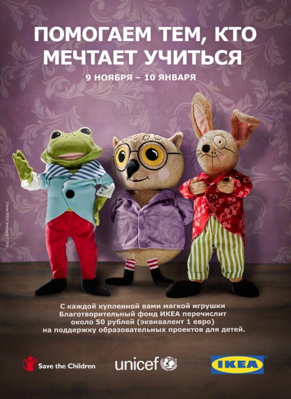 Кампания «Помогаем тем, кто мечтает учиться» уже в двенадцатый раз проходит во всех странах, где есть магазины ИКЕА. За весь период проведения кампании ежегодные отчисления ИКЕА превысили 67 млн евро. Эти средства были направлены на образовательные проекты, по результатам которых дети из 46 стран мира смогли ходить в школу. А в прошлом году благодаря российским покупателям ИКЕА направила 1 216 742 евро в Фонд ЮНИСЕФ на детское образование.
