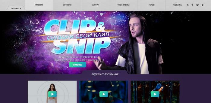 С 1 апреля каждый человек с доступом к Интернету и компьютеру может создать на сайте http://www.clip-n-snip.ru/ свой собственный клип и песню для Егора Крида, популярного музыканта и исполнителя жанров Pop и R’n’B, автора одного из главных хитов 2014 года «Самая Самая». Лучшая работа по итогам пользовательского голосования войдёт в новый альбом артиста и попадёт в ротацию на ТВ и радио.
