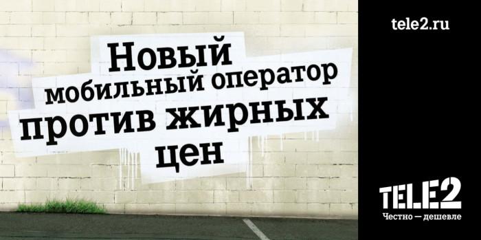 Слоганом креативной платформы с апреля 2014 года является фраза «Tele2. Честно – дешевле». Tele2 сохраняет верность этой позиции и выстраивает свою работу, основываясь на принципах честности, прозрачности бизнеса и низких ценах.