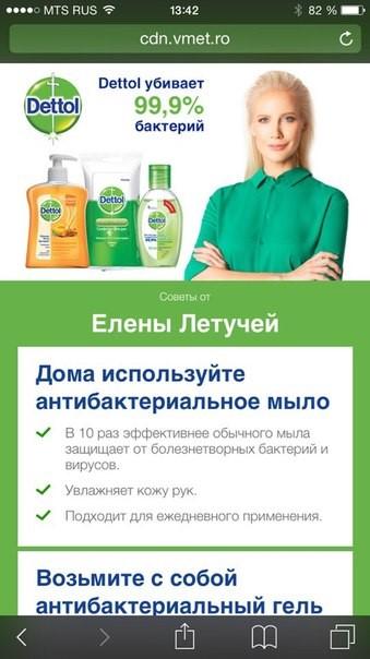Бренд Dettol (Reckitt Benckiser) запустил проект 'Здоровье в ваших руках' с участием звезды программы 'Ревизорро' Елены Летучей. Цель проекта - рассказать аудитории о Dettol именно в том месте, где он является незаменимым помощником в борьбе против бактерий, и показать пассажирам метрополитена важность соблюдения гигиены рук.