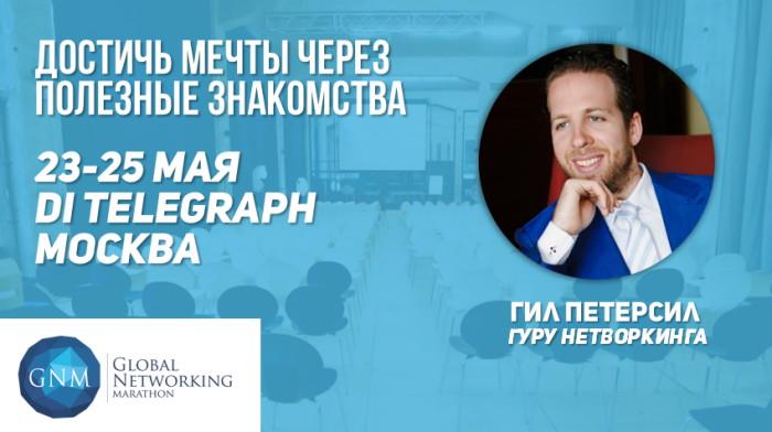 23-25 мая 2015 года в Москве пройдет «Global Networking Marathon - 2015» (GNM) - крупнейшее международное событие в сфере нетворкинга, которое охватит также Тель-Авив, Лондон, Майами и Карибские острова. Москва в этом году станет первым городом, где пройдет трехдневный марафон, основная цель которого – обмен навыками заведения полезных деловых контактов