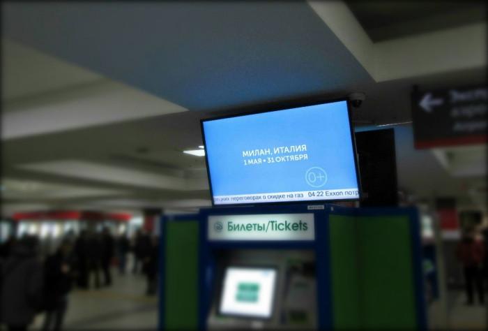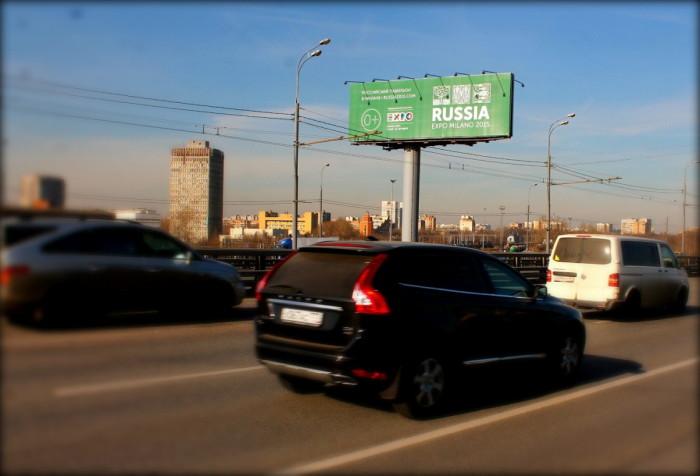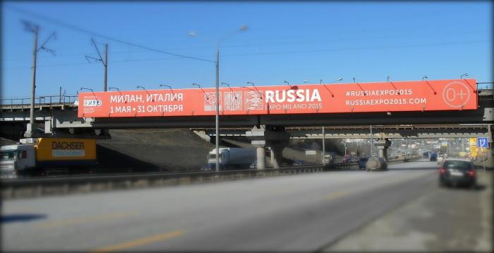 Визитную карточку павильона России на «ЭКСПО-2015» можно было увидеть на 18 суперсайтах, расположенных вблизи наиболее оживленных магистралей столицы, и на арках железнодорожных путепроводов.
