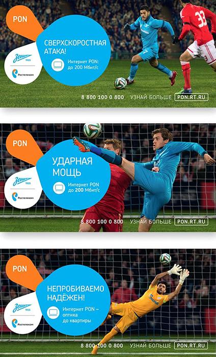 Продуктовая кампания в новой визуальной стилистике анонсирует начало сотрудничества «Ростелеком Северо-Запад» и футбольного клуба «Зенит» - двух брендов-лидеров, двух компаний с большими амбициями и общими целями: побеждать и радовать всех красотой футбола, как на стадионе, так и на экранах телевизоров и мониторах.