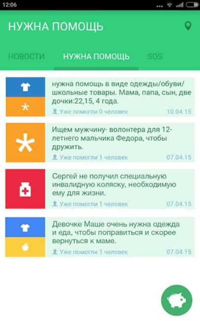 Заявки на помощь регистрируются в разделе «SOS». Пользователь может поделиться своим несчастьем, рассказать о проблеме родственника, друга или незнакомого человека. Информация о пострадавшем, суть проблемы и место, где произошла беда, указываются в поле заявки. А чтобы подтвердить реальность описанной ситуации достаточно прикрепить фото или видеоматериалы. После модерации просьбу увидят все пользователи приложения.