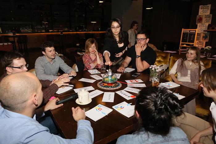 Слева направо, победители игры «Что? Где? Когда?». Команда выпускников Курса Master of Brand Administration против команды преподавателей Ольга Кимцова, Nectarin Мария Ребристая, MediaCom Николай Федянин, Johnson&Johnson Иван Беловолов, Clarins Кирилл Мещеряков, Flipping book Дмитрий Трепольский, PRonline