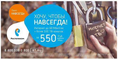 Вот для таких отношений, которые будут длиться вечно, Ростелеком предлагает ТВ и Интернет по низкой цене, которая не изменится.