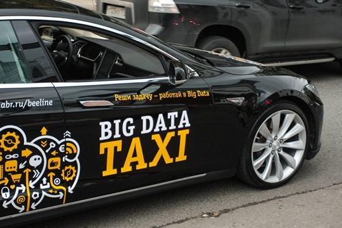 Для привлечения внимания нестандартных людей два дня по Москве ездило необычное такси марки Tesla с надписью Big DataTaxi. Любой желающий мог на нем прокатиться, если давал правильный ответ на задачу по Big Data, которую загадывали красивые девушки-таксисты.