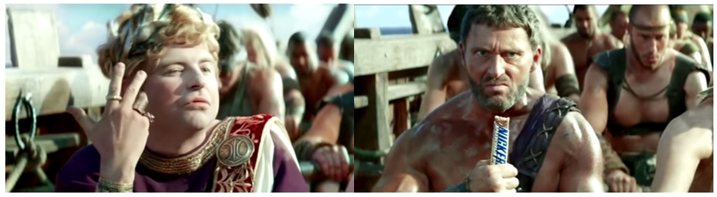 До 10 октября на федеральных каналах будет транслироваться новый рекламный ролик Snickers «Арахисовый бунт». В этот раз героями нового ролика стали древнеримские гребцы галеры, которые готовят восстание. Но продуманный план может сорваться: их голодный предводитель превращается в капризного патриция и не желает думать ни о чем другом, кроме еды. Справиться с неожиданным голодом вновь помогает Snickers. Подави голод!