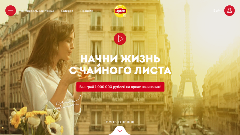 Часть проекта посвящена списку планов и небольших дел, которые можно выиграть каждую неделю. Они дают возможность попробовать чтото новое, например, научиться верховой езде, посмотреть на мир с высоты птичьего полета, удивить любимых. Lipton List — это первые шаги к большим переменам. Чтобы стать участником конкурса и выиграть один из вдохновляющих призов, необходимо ввести специальный промокод с упаковки чая Lipton. Розыгрыш подарков будет проходить еженедельно с марта по август.