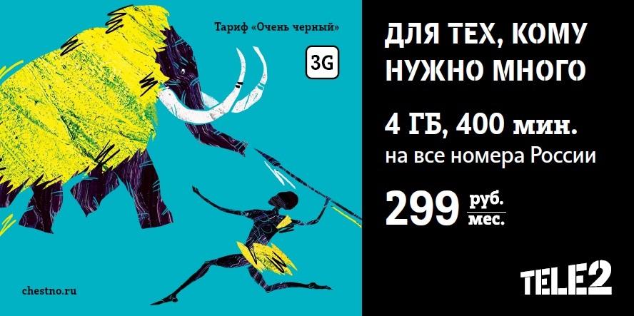 Tele2 предлагает низкие цены клиентам с большими потребностями в услугах связи. Абоненты могут на выгодных условиях подключить тарифы «Очень черный» и «Самый черный» с объемным пакетом трафика, минут и сообщений.