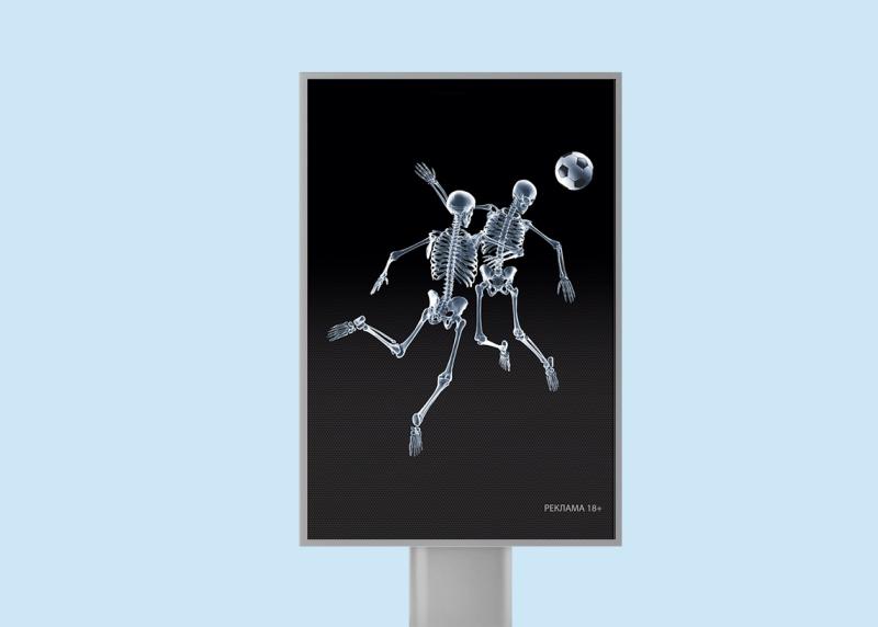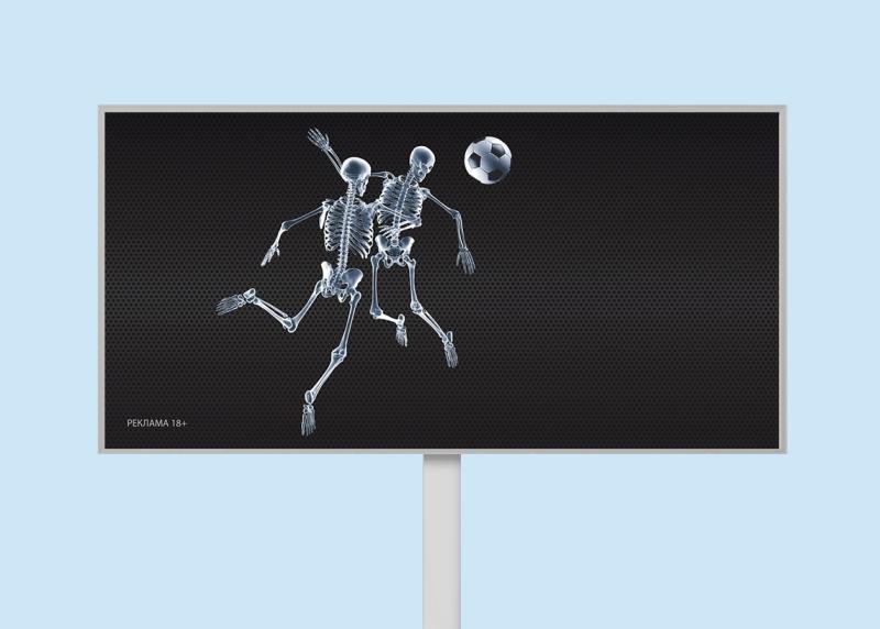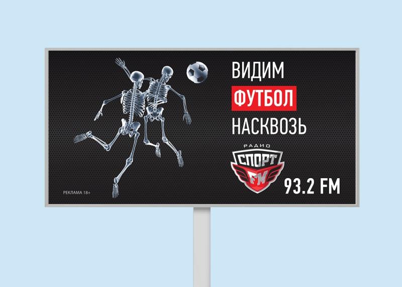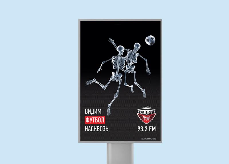 «Креатив Спорт FM должен выделяться на фоне других рекламных кампаний, приуроченных к Чемпионату Европы по футболу, поэтому мы отказались от стандартных элементов, таких как трибуны стадиона, газон или фото футболистов, - говорит Анна Погосян, руководитель проектов: «Мы предложили заказчику формат «тизер – плизер», что привлекает внимание и позволяет дать аудитории время удивиться и обсудить. В качестве тизера - необычные постеры с изображением скелетов, играющих в футбол. Интрига раскрывается в плизере – Спорт FM знает про спорт все, буквально «видит его насквозь».