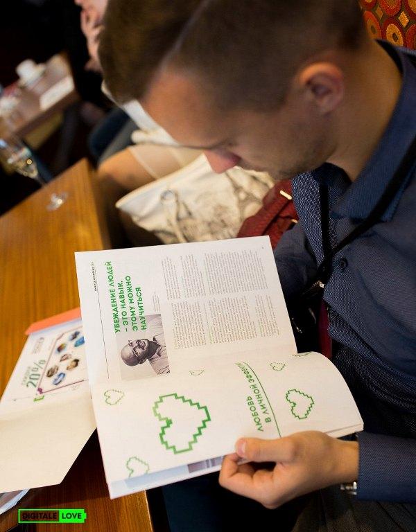 Любовь к клиентам. Многие спикеры затронули эту тему. Некоторые начали с определения, кто является вашим клиентом. Так, Самвел Аветисян, известный маркетолог, разобрал по частям «потребителя» на покупателя, пользователя, выбирателя, платителя и советователя. Эту тему также затронул Дмитрий Сатин в докладе «Фактор человека». Он рассказал о разнице между человеком, принимающим решение о покупке, и тем, кто платит.