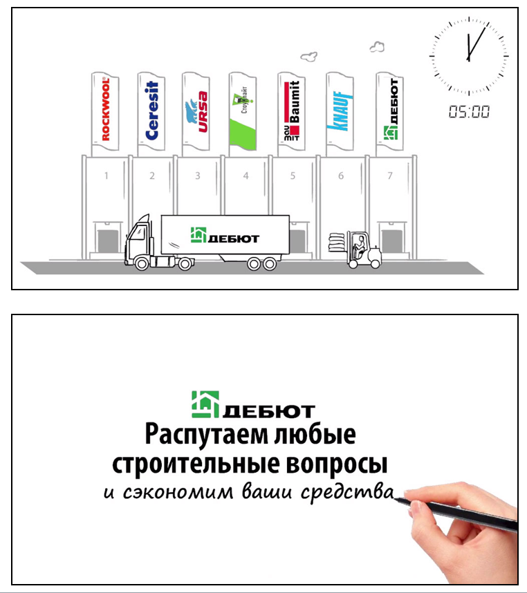 Креативное агентство «МастерУм» («Дэнекс») разработало сценарий и создало рекламный ролик для украинской компании «Дебют» (Киев). Сфера её деятельности – оптовые продажи строительных материалов и хозяйственных товаров