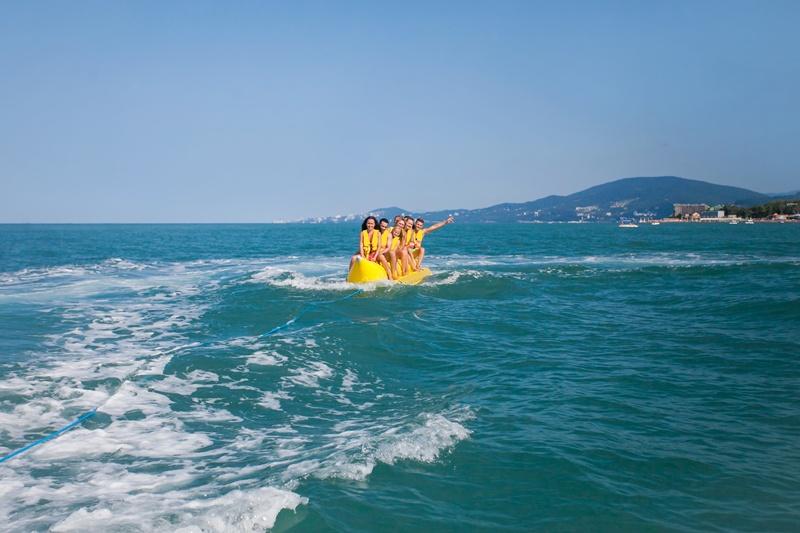 Прокатиться на банане сможет любой желающий. Пассажиров ждут два надувных банана — на восемь и десять мест. Они будут катать взрослых и детей каждый день, с полудня до четырех часов поочередно на пляжах «Чайка», «Южный-1» и «Ривьера. За это время команда сервиса рассчитывает прокатить от 1200 до 1500 человек.