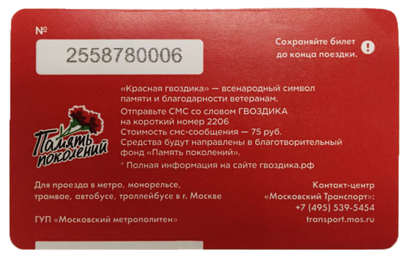 В ходе специального проекта при поддержке Департамента транспорта города Москвы были выпущены 500 тысяч брендированных проездных билетов «Единый», которые в течение нескольких дней, начиная с 20 июня, распространялись в кассах Московского метрополитена. На обратной стороне билета находилась информация о благотворительной акции и способах сделать пожертвование через сайт фонда и SMS.