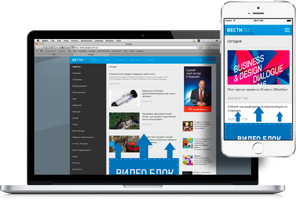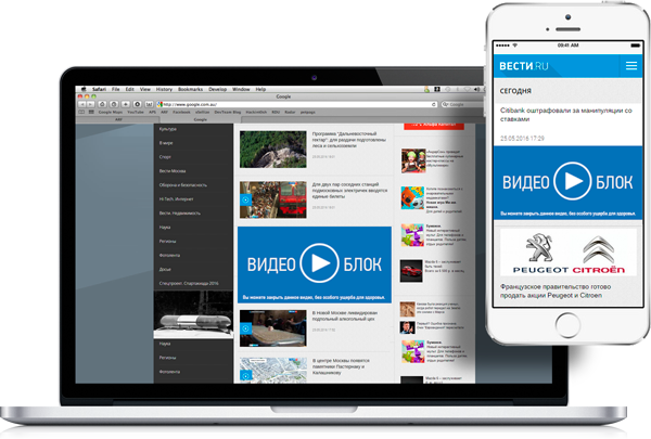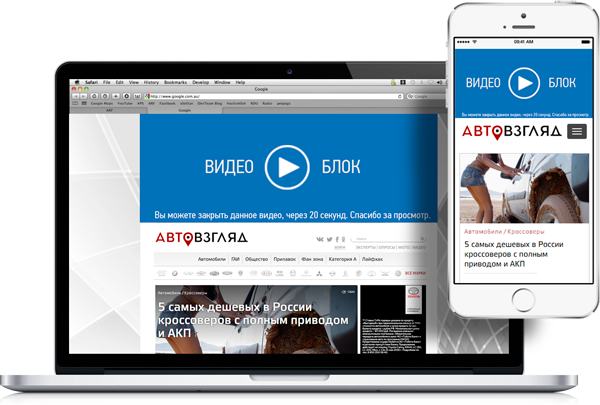Охват – форматы Vengo Vision отображаются на десктопных и мобильных устройствах крупнейших СМИ. Кроме того, реализован показ рекламы в режиме автостарт на iOS устройствах.