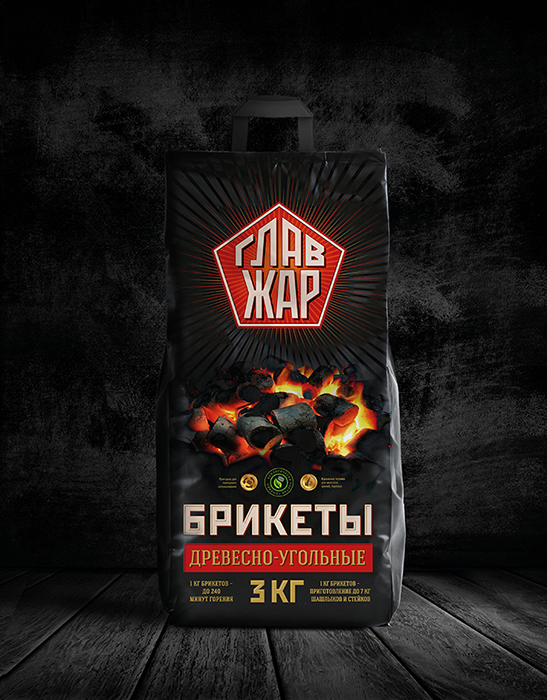 Нейм бренда - «ГлавЖар» - говорит, что продуктовая линейка разработана и произведена специалистами в своей отрасли, позиционирует экспертность в приготовлении мяса на открытом огне. Charsky studio отталкивалась от идеи имитации названия экспертного учреждения, обладающего значительными компетенциями. Мощное брутальное звучание формирует образ надежности и уверенности. Коммуницирует идею «мастерского» умения поддерживать процесс (т.е. не как таковой поджиг углей, а длительное приготовление на жару, обжарка мяса на углях), что качество и вкус еды, приготовленной с помощью этих продуктов, будет безупречным.