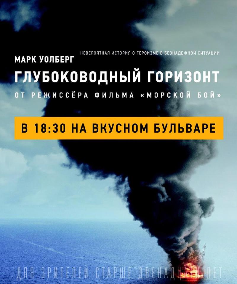 В ходе кинопоказа посетители смогут посмотреть фильм «Глубоководный горизонт», основанный на реальных событиях и рассказывающий об одной из самых страшных техногенных катастроф в истории – аварии на нефтяной платформе в Мексиканском заливе в 2010 году. Фильм наглядно демонстрирует последствия деятельности людей и тот вред, который мы наносим экосистеме. В то же время картина – гимн храбрости и отваге людей, стремящихся исправить ситуацию и спасти своих друзей и близких.