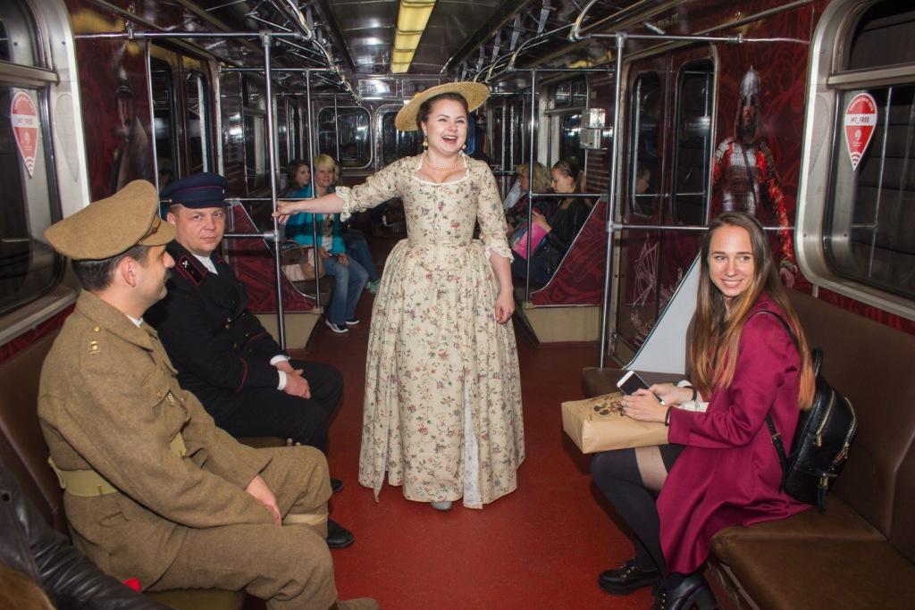 Запуск поезда был осуществлен 26 мая, он начал курсировать на Замоскворецкой линии метро. Сигнал к отправке состава из депо Сокол подал станционный смотритель. Пять вагонов посвящены основным исторических эпохам — Античности, Средневековью, XVII, XVIII и XX векам, три вагона со смежными эпохами. В поезде вместе с пассажирами ехали персонажи разных времен: дамы в шляпках, античные патриции, купцы конца XIX века, княгини средневековой Руси и многие другие.