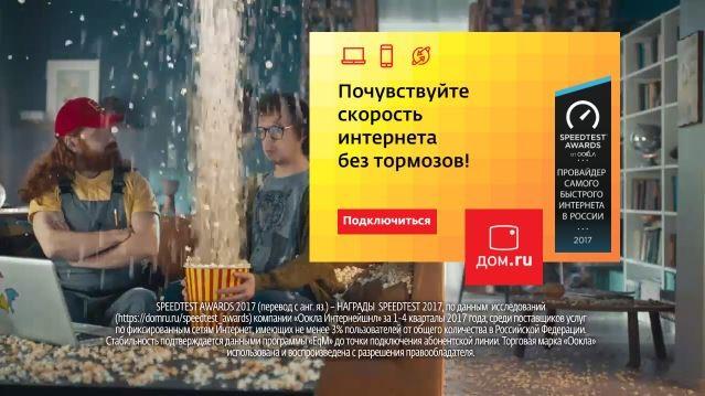 Интернет-провайдер Дом.ru провел рекламную кампанию с целью повышения узнаваемости бренда и продвижения ценовых предложений в регионах России. Под кампанию селлер видеорекламы GPMD (Gazprom-Media Digital, дочерняя компания НСК) создал эффективный интерактивный формат. Медийный партнер проекта - Dentsu Aegis Network.