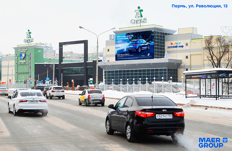 Цифровой носитель установлен на фасаде ТРК «СемьЯ» на пересечении улиц Н. Островского и Революции. Площадь медиафасада — чуть более 200 кв. метров. Место установки медиафасада выбрано не случайно: ТРК «СемьЯ» — крупнейший торгово-развлекательный центр Перми, расположенный вблизи от магистрали «Новая Дамба» в зоне высокой транспортной доступности. Посещаемость ТРК составляет в среднем 25 тысяч человек в сутки.