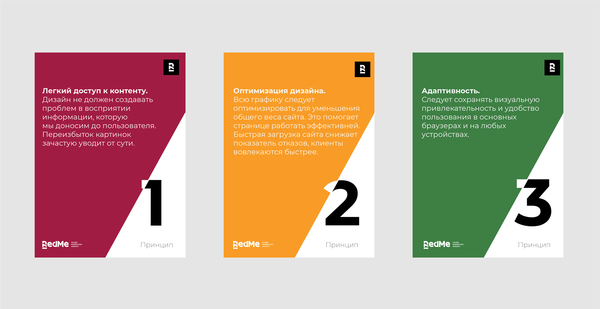 Устойчивый веб-дизайн — это подход к разработке онлайн-проектов, которые максимально сокращают экологическое и информационное загрязнение. У агентства социально ориентированного маркетинга не могло быть другого сайта, так как в основе подхода RedMe — цели устойчивого развития на период до 2030 г. (ЦУР), разработанные ООН для улучшения благосостояния и защиты нашей планеты. Именно поэтому агентству RedMe важно соответствие ЦУР в собственном позиционировании: «Когда агентство появилось в 2018 году, мы решили, что с точки зрения экологичности лучшими визитками для нашей команды будет их отсутствие в печатном виде. Но жить без сайта — это уже какой-то экохардкор. Поэтому мы поставили себе задачу придумать самый 'энергосберегающий' сайт. Причем сделать это на всех уровнях: текст, дизайн, программинг, хостинг и т. д.», — вспоминает креативный директор RedMe Святослав Лавров.