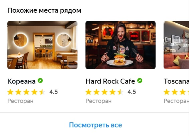 Показы в карточках конкурентов, у которых нет рекламы. Это значит, что ваша организация будет показана в карточках похожих компаний, которые находятся рядом. При этом в вашей карточке рекламы конкурентов не будет.