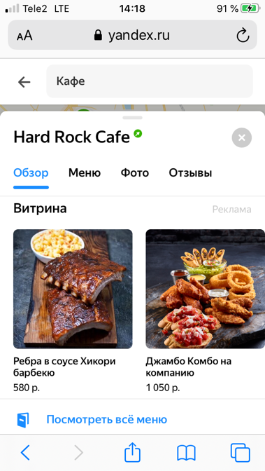 Пример карточки в «Яндекс.Картах»