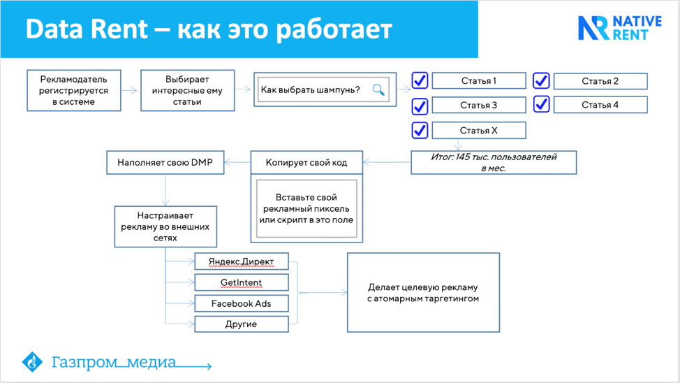 «По итогам нескольких месяцев диалога с рекламодателями мы увидели спрос на «аренду именно данных пользователей», которые читают конкретные статьи, пытаясь найти решение своей проблемы\вопроса. Данный инструмент позволит повторно дотянуться до пользователя и показать ему рекламу за счет ретаргетинга. Но главным преимуществом продукта является то, что у бренда есть точная информация, что он (пользователь) читал конкретную статью, а как следствие — интересовался решением той или иной рациональной проблемы».