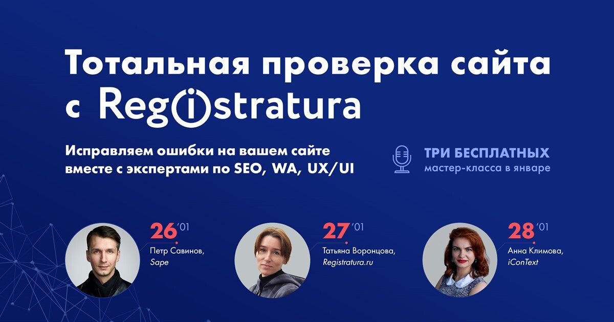 С 26 по 28 января компания Registratura, входящая в iConText Group, проведет три бесплатных мастер-класса. В числе спикеров — эксперты компаний Registratura, Sape и iConText