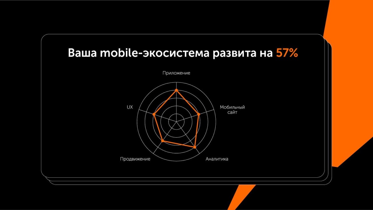 После прохождения опроса пользователи получают персонализированнуюоценку инфраструктуры бизнеса и рекомендации экспертов Redmadrobot и Go Mobileпо улучшению стратегии развития и продвижения активов.