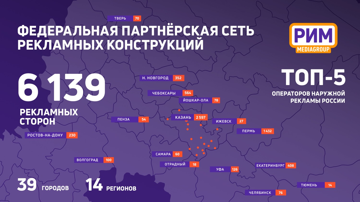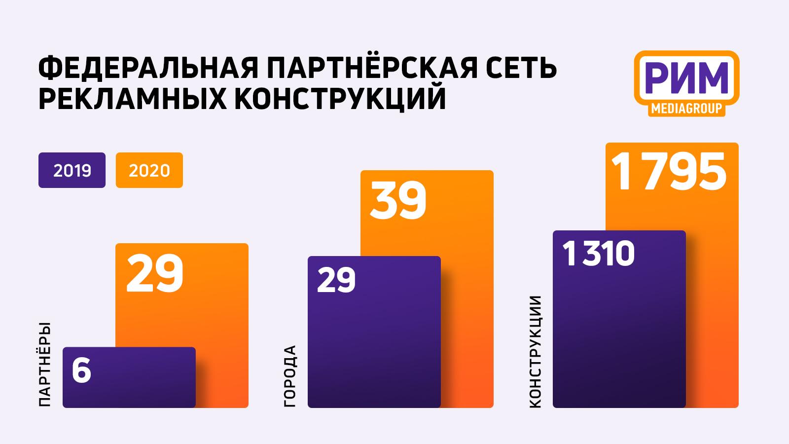 Общее количество рекламных сторон под управлением медиагруппы «РИМ» достигло6139, конструкций различных форматов — 1795 и 12 медиафасадов.