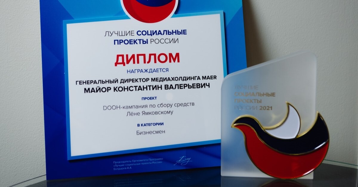 Форум и церемония награждения «Лучшие социальные проекты России» проходили24 июня в «Рэдиссон Завидово». В этом году победу в конкурсе принеслаDOOH-кампания по сбору средств на самое дорогое лекарство в мире. Maer запускална своих экранах масштабный призыв о помощи полуторагодовалому мальчику изАстрахани с диагнозом спинальная мышечная атрофия.