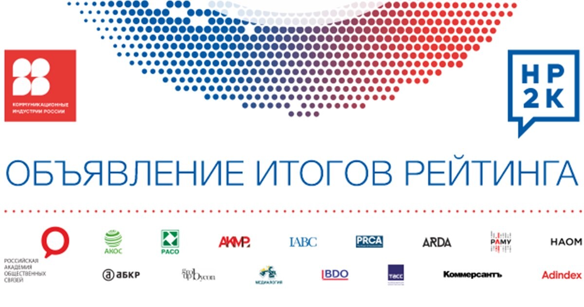 При поддержке Ассоциации компаний-консультантов в области связей собщественностью (АКОС), Российскойассоциации по связям с общественностью(РАСО), Ассоциации директоров покоммуникациям и корпоративным медиа России(АКМР), Российского отделения Международнойассоциации бизнес-коммуникаторов(IABC), Ассоциации по связям собщественностью и коммуникациям (PRCA Russia),Ассоциации развития диджитал-агентств(ARDA), Российской ассоциации маркетинговыхуслуг (РАМУ), Национальной ассоциацииорганизаторов мероприятий (НАОМ), Ассоциациибрендинговых компаний России(АБКР)