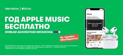 «МегаФон» предложил абонентам бесплатную годовую подписку на Apple Music