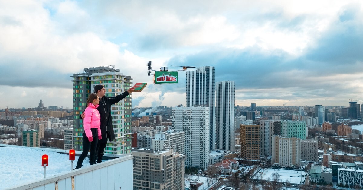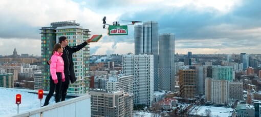 А в России летающее устройство, разработанное командой МАИ, осуществилодоставку продукта блогерам-экстремалам, покоряющим высоту.