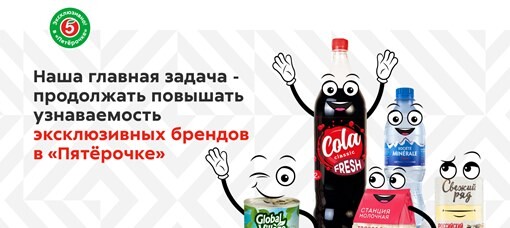 «Наша главная задача — продолжать повышать узнаваемость эксклюзивных брендов„Пятерочки“. В конечную цену известного товара заложены издержки на логистику,посредников, маркетинг — широкую медийную рекламу, в том числе на ТВ, и т. п.Мы же пошли по другому пути, решив показать преимущества эксклюзивных марок,которые пока мало известны, но подойдут осознанным покупателям — тем, ктопривык покупать рационально, выбирать качество и не переплачивать заизвестность бренда».