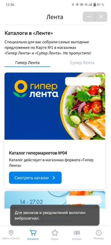 «Лента» запустила мини-приложение в VK с каталогами и промо