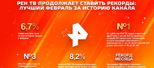 Февраль стал лучшим для РЕН ТВ за всю историю канала