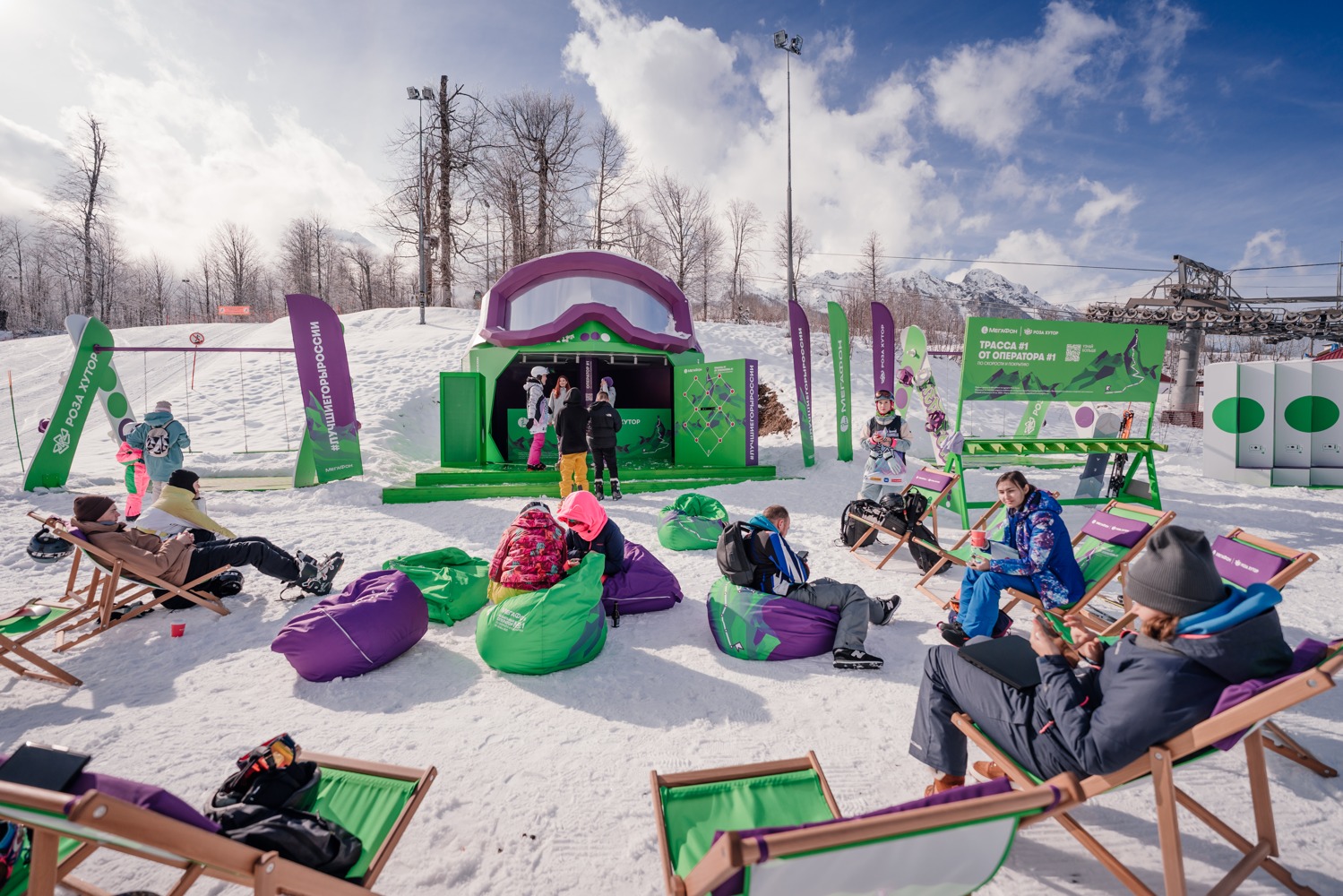 Кроме того, все могут посетить бренд-зону в виде большого горнолыжного шлемас шезлонгами, пуфами и качелями, где можно отдохнуть под живые DJ-сеты, сделатьфото и выложить их в соцсети с помощью высокоскоростного интернета от«МегаФона».