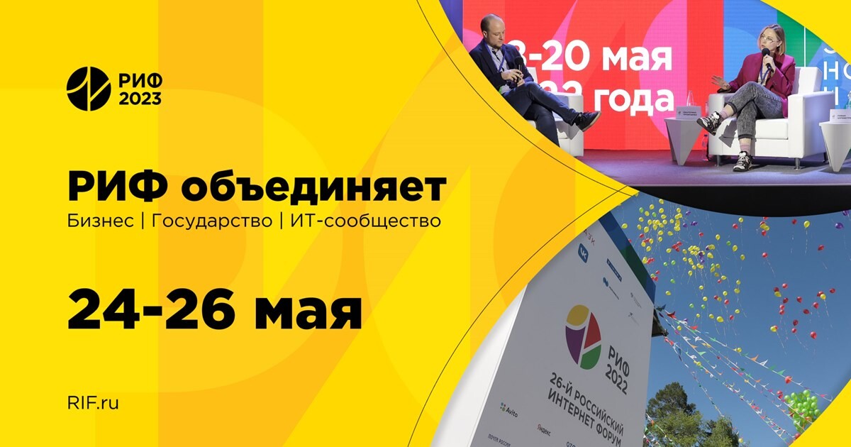 24-26 мая в пансионате «Лесные дали» в Подмосковье пройдет РИФ-2023. Участники, спикеры, организоторы соберутся, чтобы обсудить ИТ-тренды, найти новых клиентов и бизнес-партнеров, перезагрузиться, набраться сил, мыслей и идей.