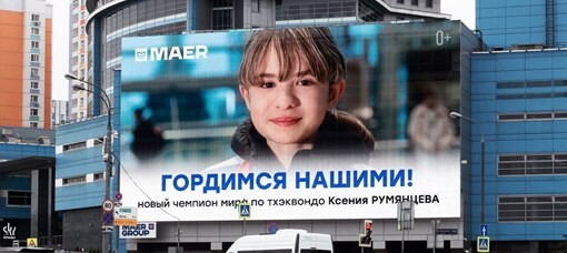 Maer помог 12-летней тхэквондистке Ксении Румянцевой стать чемпионом мира:организовал поездку на чемпионат в Аргентину, а по возвращении в Россиюпредставил достижение спортсменки на медиафасадах в Москве и ключевых регионахстраны.