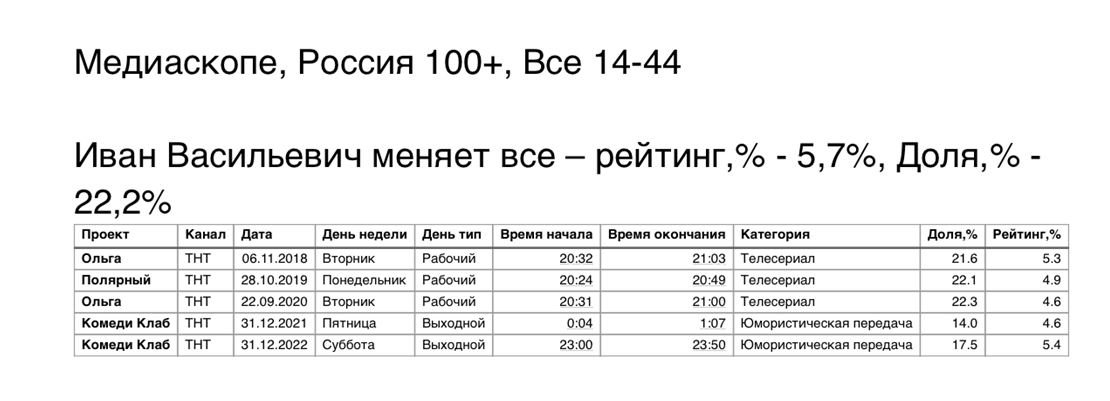 «Новогодний фильм ТНТ находится в топ-10 онлайн-кинотеатра замесяц. В следующему году “Кинопоиск” и ТНТ продолжат сотрудничество с командойфильма “Иван Васильевич меняет все”».