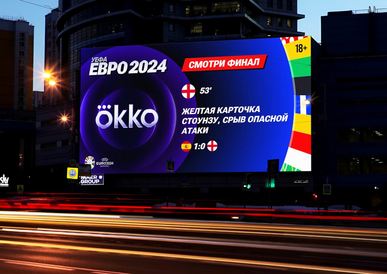 Во время крупного спортивного события медиахолдинг транслировал ключевыемоменты матча, обновляя каждую минуту счет и комментарии на медиафасадах ицифровых экранах Москвы и Московского региона. Специалисты реализовали проектна собственной, запатентованной в России платформе Lightborn.