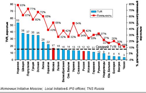 Агентство Initiative проявило любопытство и провело исследование, посвященное тому, как смотрели Евровидение в России и 22 странах Европы. В результате анализа данных выяснилось, что последние 10 лет отмечены неуклонным ростом интереса россиян, москвичей в особенности, к Евровидению. Максимальное число зрителей песенный конкурс собрал в этом году, когда Россия выступила страной-организатором.