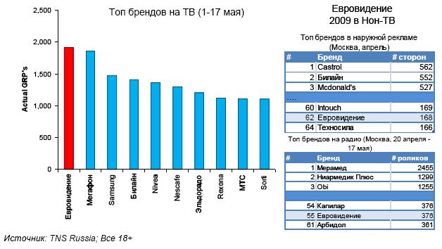 Евровидение активно рекламировалось и анонсировалось как на ТВ, так и на радио и в наружной рекламе. В начале мая это был самый рекламируемый бренд на ТВ.
